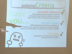During the day, teams stopped for 15 minutes to give each other updates with where they were, including accomplishments and problems. Most teams stayed in the same space which kept the energy high. I believe a couple of teams went to a VC’s office and another some other office space. http://www.youtube.com/watch?v=pH9Gx_IdLic&feature=related