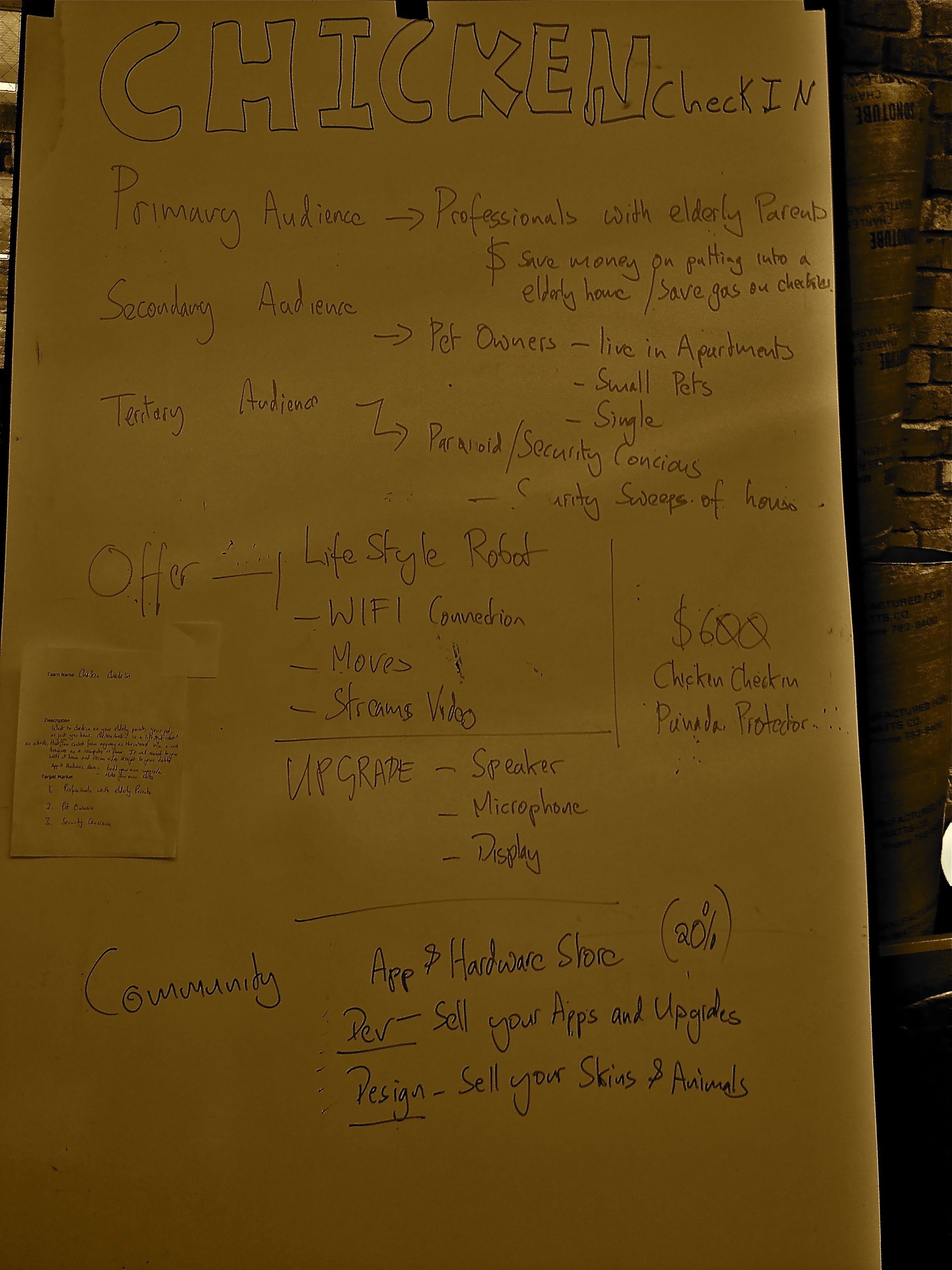 I sold the “Chicken Checkin” idea to Justin and the rest of the team as they came in, and updated them on what I’d learned. Justin worked on giving an us a set of robot feature set that would cost under $300. This was a product name only, the company name would be Life Style Robots.