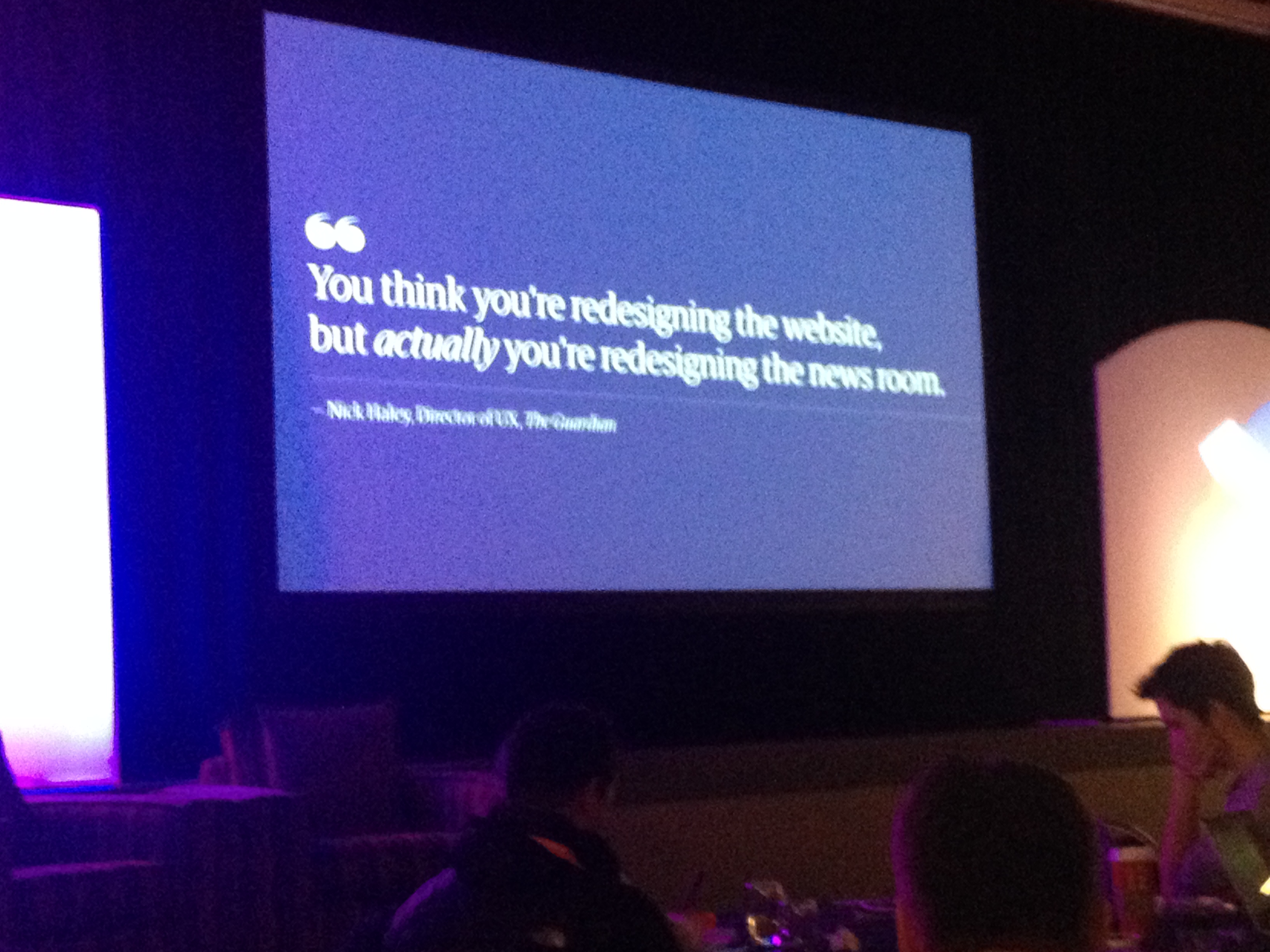 It was a mixture of designers, developers and product people. This conference was a good mix of people, nationalities and friendly. Culturally it felt like a fusion of an European and North American conference. The lightning talks (the evening before the conference started) were a nice touch i.e. short talks given by conference participates who were not speaking as part of the main schedule.